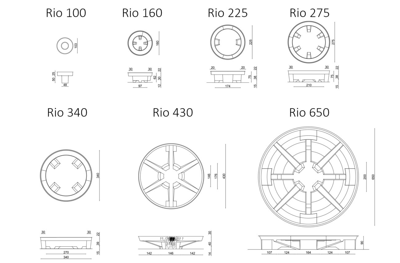 | Rio 100 | Rio 160 | Rio 225 | Rio 275 | Rio 340 | Rio 430 | Rio 650 | |