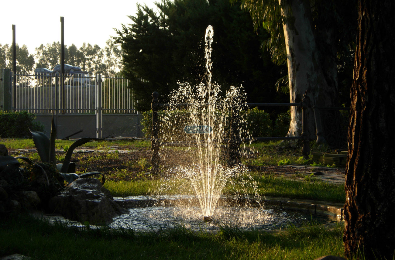 La fourniture de base des fontaines assemblées comprend, en plus du réservoir, l’ajutage choisi, la pompe submersible basse tension et les accessoires nécessaires. L’éclairage n’est pas inclus, ce qui est fait selon les besoins du client avec des projecteurs conçus et fabriqués spécifiquement pour une utilisation immergée et qui ont la possibilité de « parler » avec les systèmes de contrôle électroniques (voir la section ÉCLAIRAGE IMMERGÉ POUR FONTAINES).